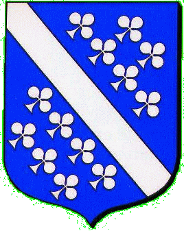 D'azur au lion bandé d'argent et de gueules.