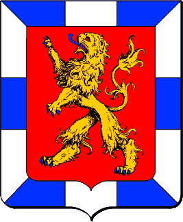D'azur au lion bandé d'argent et de gueules.