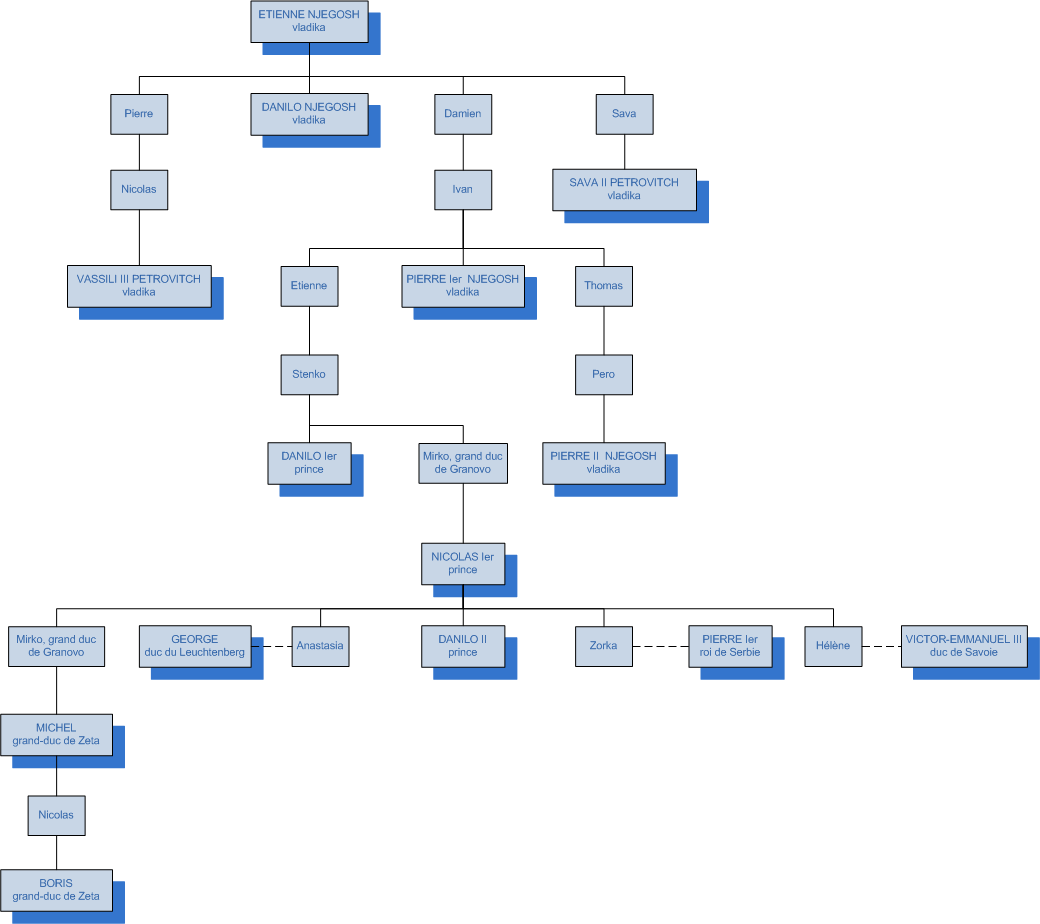 De gueules, à l'aigle bicéphale d'argent, becquée, languée et membrée et couronnée d'or, tenant dans sa patte dextre un sceptre du même, et dans sa sénestre un orbre d'azur, cerclé et croisé d'or; chargée en coeur d'un écusson d'azur, à un lion léopardé d'or, armé et lampassé de gueules, passant sur une terrasse de sinople