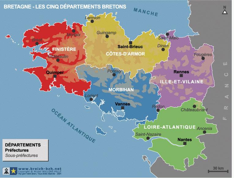 Le nom « Bretagne » vient du latin Brittania (à l'époque plus rarement écrit Britannia) qui signifie littéralement le pays des Bretons. |