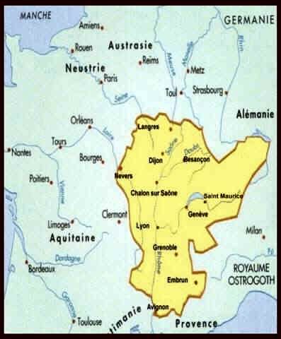 Les royaumes burgondes, légitimés en 443, sont décentralisés et y règnent des rois burgondes simultanément dans les grandes villes qui en font partie. Il est vraisemblable qu'une alliance avec le royaume alaman, que corrobore une proximité dans l'organisation du pouvoir et le syncrétisme culturel, ait permis leur expansion conjointe sur le domaine gallo-romain après la chute de l'Empire.