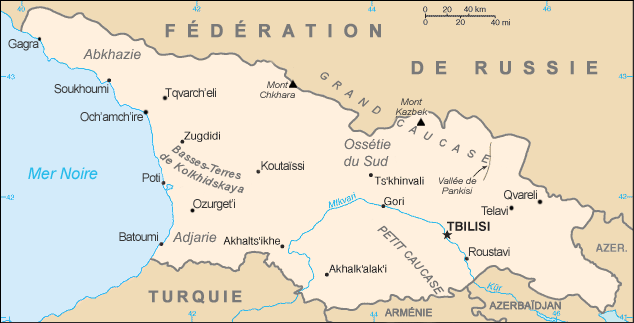 La Géorgie est un pays eurasien situé sur la côte Est de la mer Noire et sur les montagnes du Caucase. La Géorgie a des frontières avec la Russie au nord, et avec la Turquie, l'Arménie et l'Azerbaïdjan au sud. Sa capitale est Tbilissi.