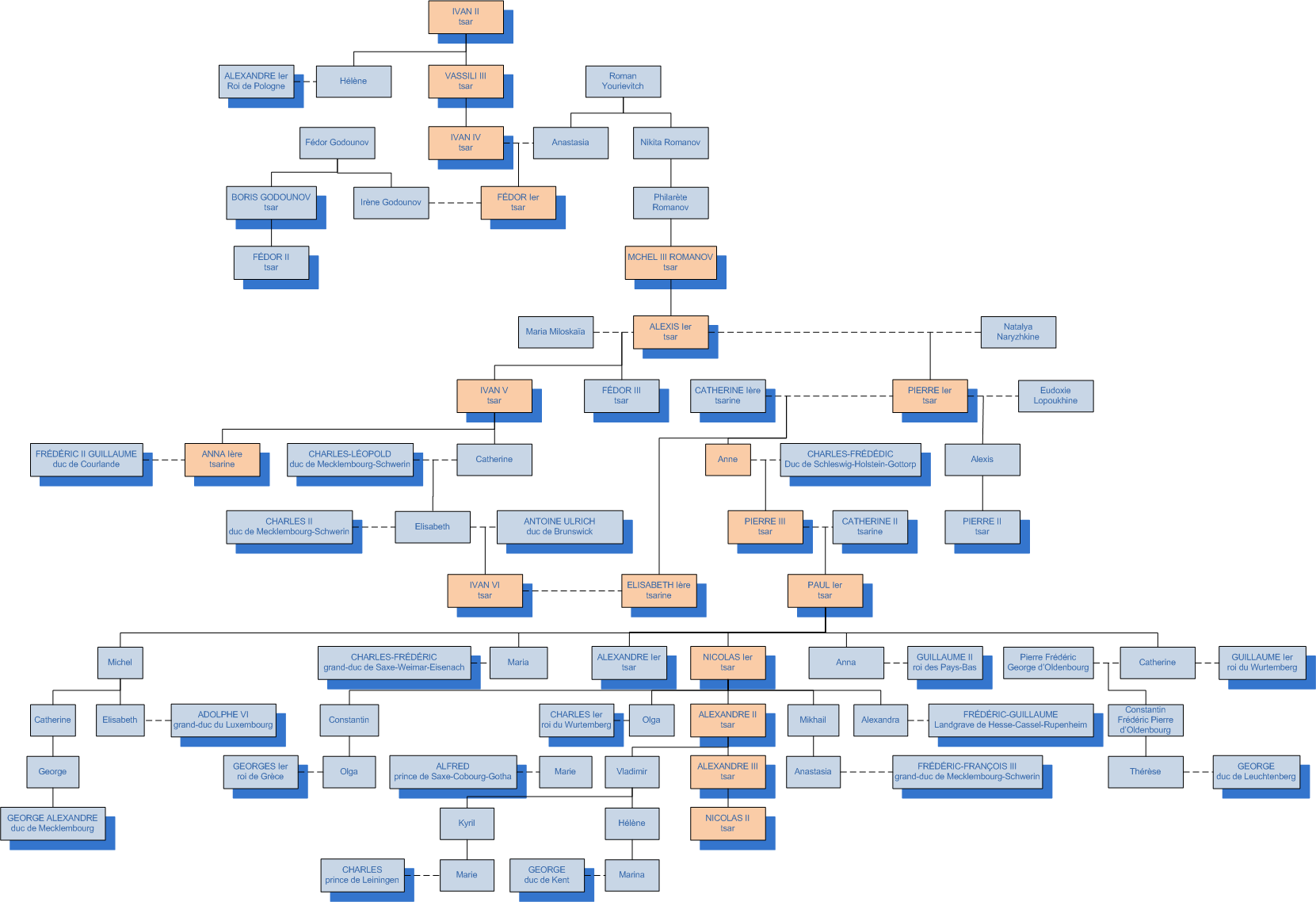 D'or, à l'aigle bicéphale, becquée et membrée d'or, languée de gueules, chaque tête surmontée d'une couronne fermée du champ, l'aigle surmontée à son tour d'une troisième couronne fermée du champ, à un sceptre du champ dans la patte dextre et un orbe d'azur, cerclé d'or, dans la patte sénestre, l'aigle chargée en coeur d'un écusson de la Moscovie, posé à la manière occidentale