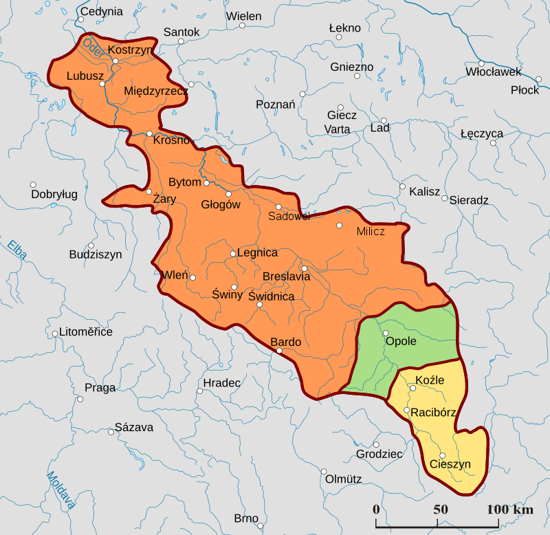 Division en quatre duchés (Wroclaw, Raciborz, Glogow, Opole) en 1177